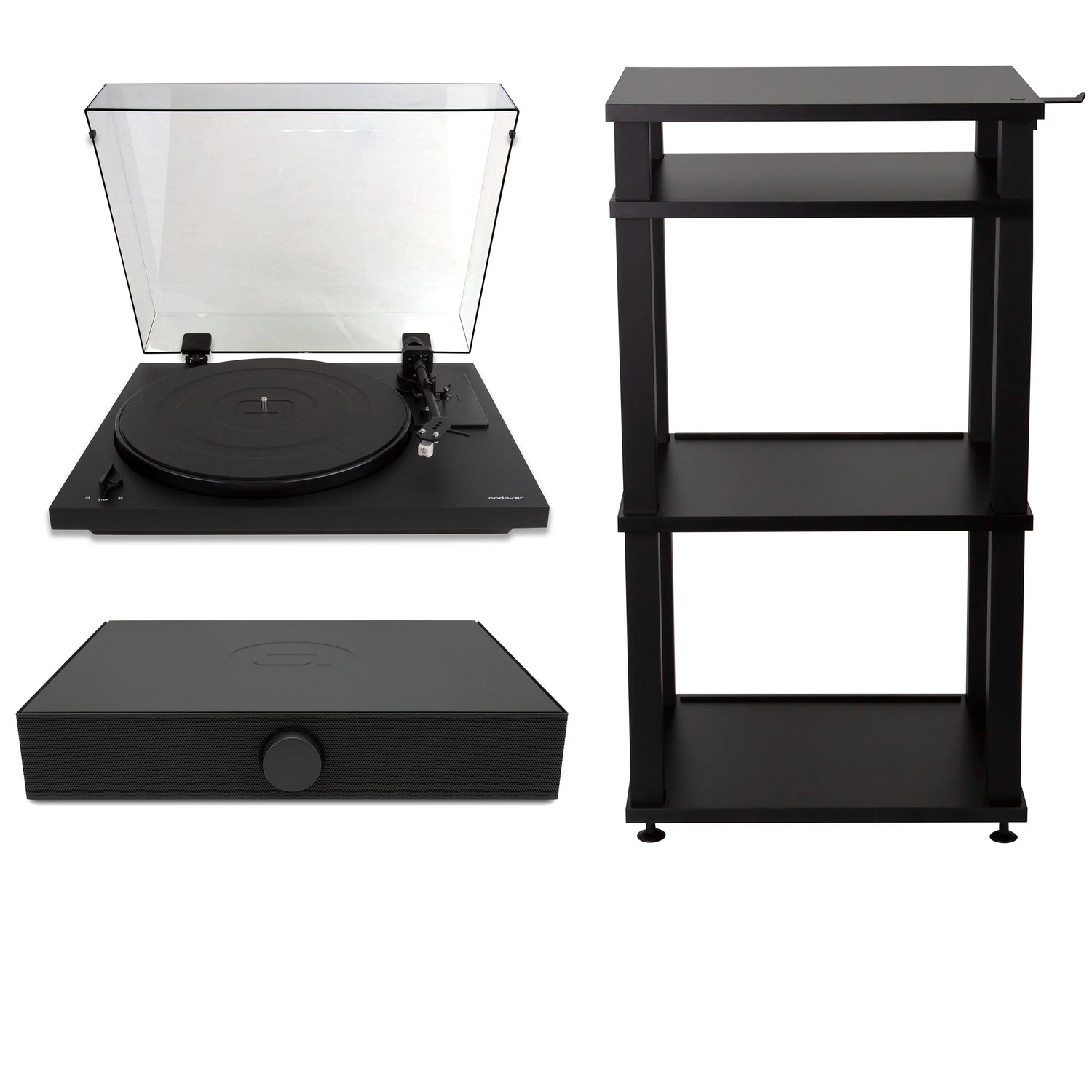 SpinTrio comprend également notre SpinStand spécialement conçu pour placer les composants à la hauteur optimale tout en offrant un stockage pratique pour vos disques !